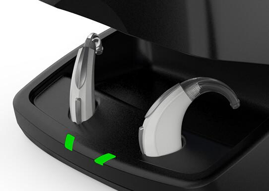 Incluso con gli apparecchi acustici BTE R troverai il nostro caricabatterie standard facile da usare che fornisce fino a tre ricariche complete per gli apparecchi acustici.